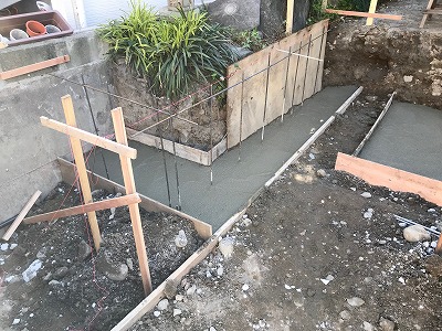 基礎部分の掘削と配筋を行い、コンクリートを流し込み土台を固めます。