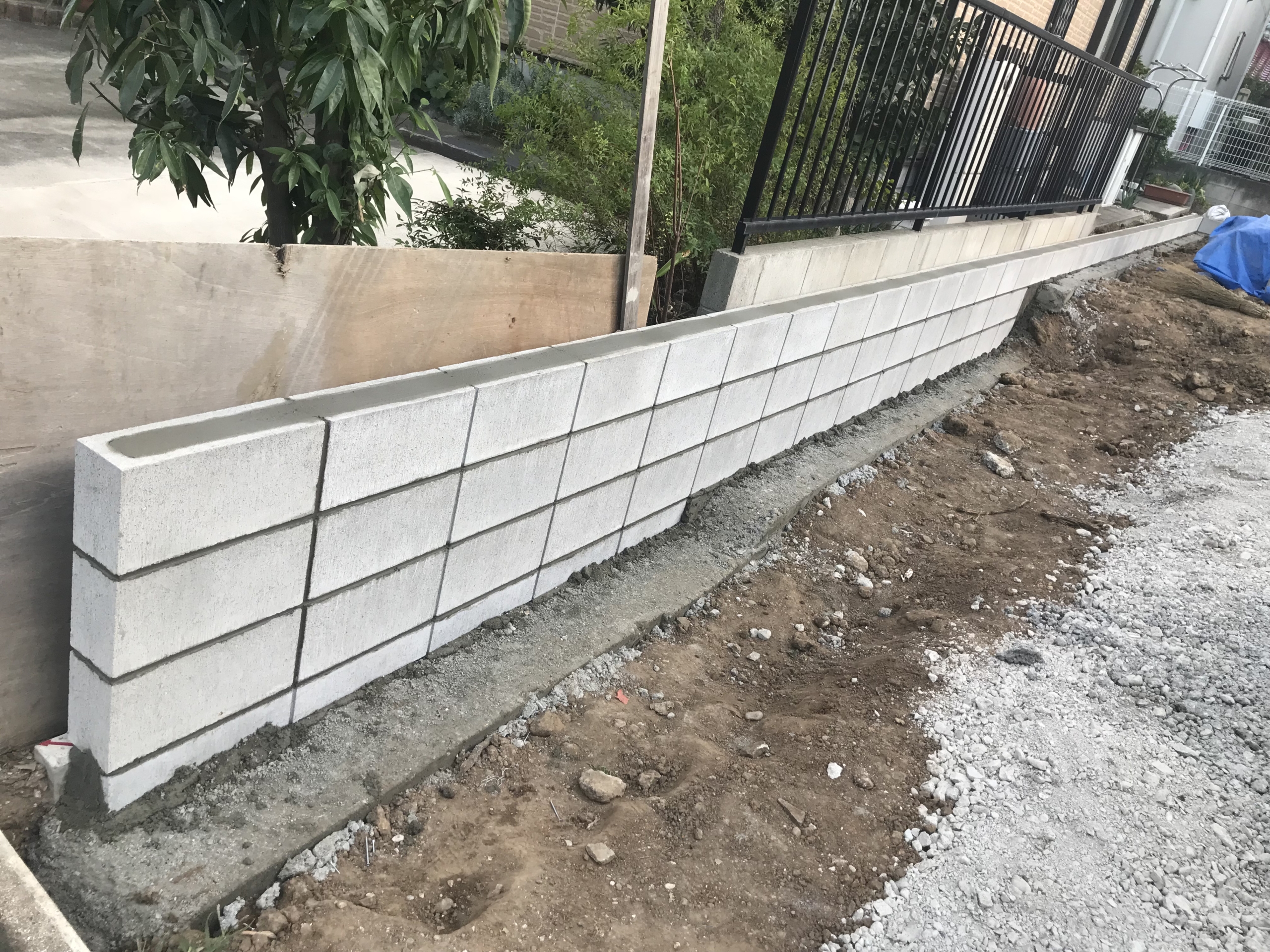 今回の現場では、敷地の一部に境界ブロックを新設しています。