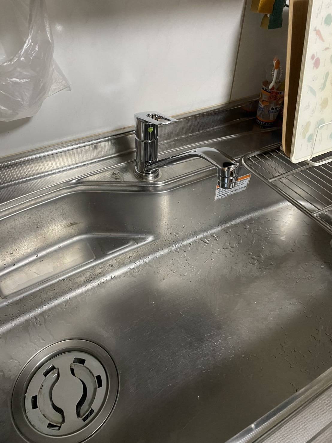 交換後の写真では、新しい水栓がキッチン全体になじみ、見た目にもすっきりとした印象になっていることが確認できます。